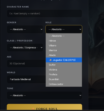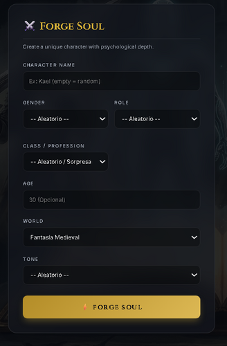 SoulForge is a procedural character generator focused on deep narrative identity.